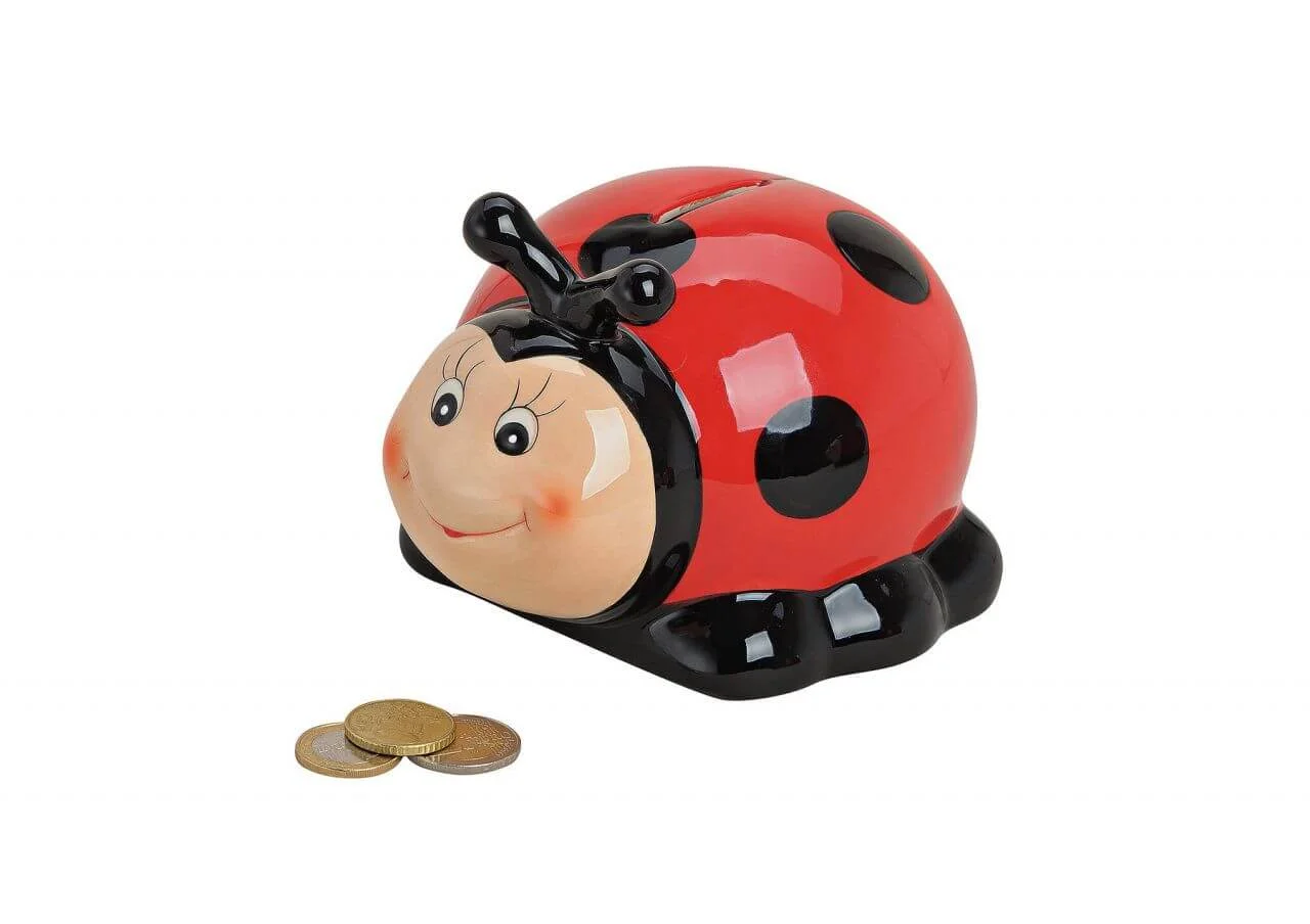 Přidejte do svého domova kus radosti a začněte spořit s touto keramickou pokladničkou s motivem berušky. Každá mince a bankovka, kterou do ní vložíte, přiblíží váš sen o splněných přáních.